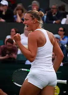 Wickmayer began her grass-court campaign at the Aegon Classic. As the ninth seed, she lost in the second round to Mirjana Lučić-Baroni.[115] Wickmayer played her final tournament before Wimbledon at the Aegon International. She reached the semifinals with wins over Christina McHale, fourth seed Petra Kvitová, and sixth seed Maria Kirilenko. She lost her semifinal match to Elena Vesnina.[116] Ranked 40 at the Wimbledon Championships, Wickmayer was defeated in the first round by Vesna Dolonc.[117]