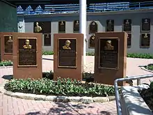 Monument Park was an open-air museum that contained the Yankees' retired numbers, as well as a collection of monuments and plaques honoring distinguished members of the New York Yankees. It was located beyond the left-center field fences, near the bullpens.