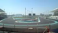 The Yas Marina Circuit (Arabic: حلبة مرسى ياس) is the venue for the Abu Dhabi Grand Prix. The circuit was designed by Hermann Tilke,[2][3] and is situated on Yas Island, about 30 minutes from the capital of the UAE, Abu Dhabi. Yas Marina is the second Formula One track in the Middle East, with the first being in Bahrain. A two-day GP2 Asia Series test was held to officially open the circuit, which was held a week before the 2009 Abu Dhabi Grand Prix.[4] It also hosted the opening event for the Australian V8 Supercars series, the Yas V8 400, in February 2010.[5][6] Outside motorsport the circuit was used for the final stage of the inaugural Abu Dhabi Tour cycle race in 2015.[7] The circuit has FIA Grade 1 license.[8]