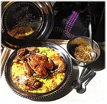Yassa is a spicy dish prepared with onions and either marinated poultry or marinated fish. Originally from Senegal, yassa has become popular throughout West Africa. Chicken yassa (known as yassa au poulet), prepared with onions, lemon or mustard, is a specialty from the Casamance region in the south of Senegal.[1] Other meats used for yassa are lamb and fish.[2][3]