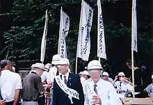 The shrine authorities and the Ministry of Health and Welfare established a system in 1956 for the government to share information with the shrine regarding deceased war veterans. Most of Japan's war dead who were not already enshrined at Yasukuni were enshrined in this manner by April 1959.[13] War criminals prosecuted by the International Military Tribunal for the Far East were initially excluded from enshrinement after the war.[13] Government authorities began considering their enshrinement, along with providing veterans' benefits to their survivors, following the signature of the Treaty of San Francisco in 1951, and in 1954 directed some local memorial shrines to accept the enshrinement of war criminals from their area.[18] No convicted war criminals were enshrined at Yasukuni until after the parole of the last remaining incarcerated war criminals in 1958. The Health and Welfare Ministry began forwarding information on Class B and Class C war criminals (those not involved in the planning, preparation, initiation, or waging of the war) to Yasukuni Shrine in 1959, and these individuals were gradually enshrined between 1959 and 1967, often without permission from surviving family members.[13][18] Information on the fourteen most prominent Class A war criminals, which included the prime ministers and top generals from the war era, was forwarded to the shrine in 1966, and the shrine passed a resolution to enshrine these individuals in 1970. The timing for their enshrinement was left to the discretion of head priest Fujimaro Tsukuba, who delayed the enshrinement through his death in March 1978. His successor Nagayoshi Matsudaira, who rejected the Tokyo war crimes tribunal's verdicts, enshrined the Class A war criminals in a secret ceremony in 1978.[13] Emperor Hirohito, who visited the shrine as recently as 1975, was privately displeased with the action, and subsequently refused to visit the shrine.[19] The details of the enshrinement of war criminals eventually became public in 1979, but there was minimal controversy about the issue for several years.[13] No Emperor of Japan has visited Yasukuni since 1975, although the Emperor and Empress still continue to attend the National Memorial Service for War Dead annually. The head-priest Junna Nakata at Honzen-ji Temple (of the Shingon sect Daigo-ha) requested the pontiff Pope Paul VI to say a Mass for the repose of the souls of all people in the Yasukuni, which would include the 1,618 men condemned as Class A, B and C war criminals, and he promised to do so. In 1980, Pope John Paul II complied, and a mass was held in St. Peter's Basilica for all the fallen civilians and fallen dead worshiped in the shrine.[11] The museum and web site of the Yasukuni Shrine have made statements criticizing the United States for "convincing" the Empire of Japan to launch the Attack on Pearl Harbor in order just to justify war with them, as well as claiming that Japan went to war with the intention of creating a "Co-Prosperity Sphere" for all Asians.[20]