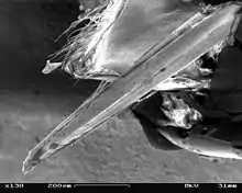Yellowjackets have lance-like stingers with small barbs, and typically sting repeatedly,[1] though occasionally a stinger becomes lodged and pulls free of the wasp's body; the venom, like most bee and wasp venoms, is primarily dangerous to only those humans who are allergic or are stung many times. All species have yellow or white on their faces. Their mouthparts are well-developed with strong mandibles for capturing and chewing insects, with probosces for sucking nectar, fruit, and other juices. Yellowjackets build nests in trees, shrubs, or in protected places such as inside man-made structures, or in soil cavities, tree stumps, mouse burrows, etc. They build them from wood fiber they chew into a paper-like pulp. Many other insects exhibit protective mimicry of aggressive, stinging yellowjackets; in addition to numerous bees and wasps (Müllerian mimicry), the list includes some flies, moths, and beetles (Batesian mimicry).