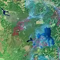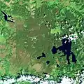 Aspen became more widespread after the fires, occupying areas that had been dominated by conifers. It had long been believed that aspen regenerated by sprouting from existing roots rather than by seed dispersal. However, aspen sprouts appeared two years after the fires as far as 9 miles (14 km) from the nearest known aspen trees. Aspen is a preferred grazing food for elk and many of the newer aspen are consequently small, except in areas that are harder for elk to get to.[31] The resurgence of aspen after the fires was a contrast to pre-fire events, as aspen had been increasingly scarce in the park. This might be a temporary event as conifers continue to grow and eventually crowd out other tree species.[29]