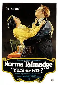 Yes or No? is a 1920 American silent drama film directed by Roy William Neill and starring Norma Talmadge in a duo role.[1] It is based on the 1917 Broadway play Yes or No by Arthur Goodrich. Talmadge and Joe Schenck produced the picture and released it through First National Exhibitors.[2][3]