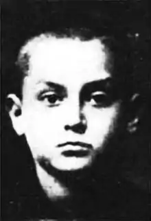 Yitskhok Rudashevski (10 December 1927, Vilnius – 1 October 1943) was a young Jewish teenager who lived in the Vilna Ghetto in Lithuania during the 1940s. He wrote a diary from June 1941 to April 1943 which detailed his life and struggles living in the ghetto. He was shot to death in the Ponary massacre during the liquidation of September–October 1943.[1] His diary was discovered by his cousin Sore Voloshin, in 1944. His cousin Voloshin fought the German army and the Soviet Union, later returning to the hideout, and found Yitskhok's diary. The diary was published in 1973 by the Ghetto Fighters' House publisher in Israel.