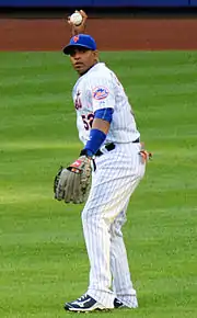 On July 31, 2015, Céspedes was traded to the New York Mets for minor league pitchers Michael Fulmer and Luis Cessa. On August 21, Céspedes went 5 for 6 against the Colorado Rockies, hitting 3 home runs in a game for the first time. Céspedes finished a triple shy of the cycle.[27] It was ranked the best offensive game of the season by ESPN.com.[28] In his first 41 games with the Mets, Céspedes exploded, posting a .309 batting average, 17 home runs, 42 RBIs, and a .691 slugging percentage. His offensive explosion helped the Mets jump up to a 9.5 game lead over the Washington Nationals in the National League East as of September 14. Because of his efforts, Céspedes was awarded the NL Player of the Week Award for September 7 to the 13th. He batted .345, hit 4 home runs, scored 6 runs, and drove 12 RBI while posting a 1.263 OPS.