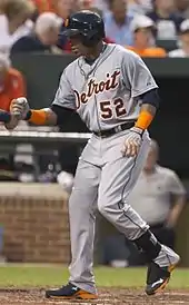 On December 11, 2014, the Red Sox traded Céspedes along with Alex Wilson and Gabe Speier to the Detroit Tigers for Rick Porcello.[23] Céspedes played his first game with the Tigers during opening day against the Minnesota Twins on April 6, 2015, where he robbed Kurt Suzuki of a home run, leading to a 4–0 victory for the Tigers.[24] Through June 13, Céspedes was hitting .308 with 9 home runs and 33 runs batted in. He was not selected as an All Star but was put in as a player on the All-Star Final Vote. Therefore, he could not compete in the home run derby after winning the two previous years.[25]