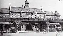 On 1 September 1923, the station was destroyed by a fire in the 1923 Great Kantō earthquake. Six days later, the station reopened with a temporary building. The city of Yokohama and the Ministry of Railways agreed in February 1924 that the station would be relocated.[15]
