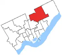 In 1966, it was redefined to lie entirely within the Municipality of Metropolitan Toronto and consisted of the eastern part of the Borough of North York and the north-western part of the Borough of Scarborough. In 1976 (with effect from the 1979 general election), the riding was shifted to the east, taking in only the easternmost part of North York, and all of northern Scarborough. The electoral district was abolished in 1987 (with effect from the 1988 general election) when it was redistributed between Don Valley North, Scarborough—Agincourt and Scarborough—Rouge River ridings.