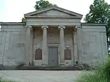 York Cemetery is a cemetery located in the city of York, England. Founded in 1837, it now encompasses 24 acres (97,000 m2) and is owned and administered by The York Cemetery Trust with support of the Friends of York Cemetery. It is situated on Cemetery Road in the Fishergate area of York. It has approximately 28,000 graves and over 17,000 monuments, six of which are Grade II-listed. The chapel is a Grade II* listed building,[1] while the gatehouse, gate and railings are Grade II. The architect of these buildings and the grounds was James Pigott Pritchett.