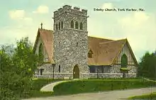 Development here began in the 1870s and virtually ended in the 1920s, leaving York Harbor a microcosm of period resort architecture, now converted for year-round use. The Marshall House was sold in 1957 and demolished in 1972, to be replaced with condominiums and the Stage Neck Inn (designed by Sasaki, Dawson, DeMay Associates). However, the York community retains a wealth of Second Empire, Shingle Style, Mission Revival and Colonial Revival architecture.[5] Of particular note are the Lancaster Building designed by E. B. Blaisdell and built in 1895, Trinity Episcopal Church designed by H. J. Hardenbergh and built in 1908, and the York Harbor Reading Room designed by James Purdon and built in 1910. The Cliff Walk, an ancient shoreline path lined with beach roses, winds along Eastern Point ledges above the surf.