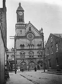 Yorkville Town Hall was the municipal building for the Town of Yorkville before annexation into Toronto. Built in 1859-1860 by architect William Hay and his apprentice Henry Langley, the three-storey building served as an omnibus stop. The hall was located north of Bloor on Yonge Street on the west side.