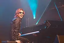 Yoshiki Hayashi (Japanese: 林 佳樹, Hepburn: Hayashi Yoshiki, born November 20, 1965) known by the mononym Yoshiki, is a Japanese musician, songwriter, composer and record producer. He is best known as the leader and a co-founder of the visual kei rock band X Japan, for which he is the drummer, pianist and main songwriter.[5] Described by Billboard as a "musical innovator"[6] and named "one of the most influential composers in Japanese history" by Consequence of Sound,[7] Yoshiki's solo career includes several classical studio albums and collaborations with artists such as George Martin, Bono, will.i.am, Jennifer Hudson, St. Vincent, Stan Lee, Roger Taylor and Brian May of Queen, Gene Simmons and KISS, Nicole Scherzinger, and Sarah Brightman.