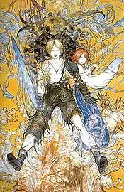 Yoshitaka Amano (天野 喜孝 (formerly 天野 嘉孝), Amano Yoshitaka, born March 26, 1952) is a Japanese artist, character designer, illustrator and a theatre and film scenic designer and costume designer. He first came into prominence in the late 1960s working on the anime adaptation of Speed Racer. Amano later became the creator of iconic and influential characters such as Gatchaman, Tekkaman: The Space Knight, Hutch the Honeybee and Casshan. In 1982 he went independent and became a freelance artist, finding success as an illustrator for numerous authors, and worked on best-selling novel series, such as The Guin Saga and Vampire Hunter D. He is also known for his commissioned illustrations for the popular video game franchise Final Fantasy.[2]