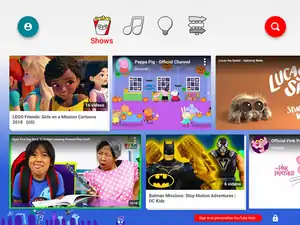 The app is divided into four content categories; "Recommended", "Shows", "Music", and "Learning". The categories feature curated selections of content from channels deemed appropriate for children.[8][9]