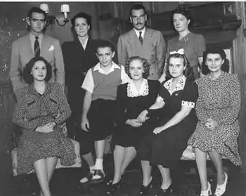 ![]() The cast of Young Widder Brown with Florence Freeman (Ellen Brown) seated middle. Announcer George Ansbro is at top left. | |