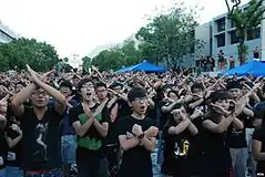 Youth in Hong Kong, according to the University of Hong Kong Statistical Profile, includes citizens of the Chinese territory of Hong Kong aged 15–24 years. As of 2011, youth in Hong Kong ages 15–24 made up 12.4 per cent of Hong Kong's overall population at 875,200 people.[1] Hong Kong is a hybrid culture, influenced by China and Britain, but overall by its international economic ties and neoliberal policies, which plays a role in shaping the lives of the youth in Hong Kong. The youth in Hong Kong is unique in the fact that many are living Transnationalist identities. The demographics are not just ethnically Chinese youth in Hong Kong, but also youth that are ethnically white, Indonesian, Filipino, which can be seen in Demographics of Hong Kong, and that creates a unique society. "Although with a dominant Chinese population, Hong Kong is an international city and is a mix of East and West rich in cultures, history, and religions."[2] The disparity between the rich and poor within Hong Kong has been growing wider.[1]