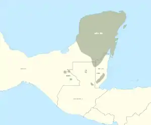 ![]() Current extent of the Yucatecan languages in Mexico, Belize, and Guatemala | |
