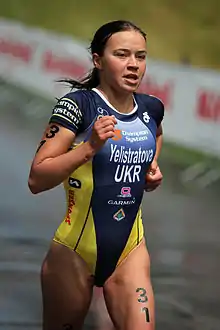 Yuliya Oleksandrivna Yelistratova (Ukrainian: Юлія Олександрівна Єлістратова; born 15 February 1988 in Ovruch, Zhytomyr Oblast, Ukraine,[1] Russian: Юлия Елистратова) is a Ukrainian professional triathlete, European U23 champion of the year 2009, Number 1 in the ITU ranking (women's standing) of the year 2009 with by far the highest “total number of races” (6), several times national champion in various categories and member of the Ukrainian national team. She competed at the 2008, 2012 and 2016 Summer Olympics.[2][3]