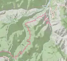 The Yungas Road is a cycle route about 60 km long which links the city of La Paz and the Yungas region of Bolivia. It draws about 25,000 tourists per year[1] and is a major La Paz tourist attraction.[2] Many tour operators cater to downhill mountain biking, providing information, guides, transport and equipment. At least 18 cyclists have died on the road since 1998.[1] The tourist route is a 64-km-long road with 3500 metres of descent.[3]