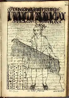 Emilio Mendizabal was the first to propose in 1976 that the Inca were using, as well as the decimal representation, also a representation based on the progression 1,2,3,5. Mendizabal in the same publication pointed out that the series of numbers 1,2,3 and 5, in the drawing of Poma de Ayala, are part of the Fibonacci sequence, and stressed the importance of "magic" that had the number 5 for civilization the north of Peru, and the number 8 for the civilizations of the south of Peru.[2]