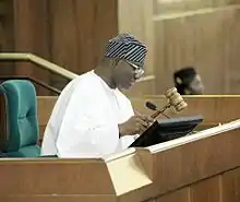 Lasun has presided over the affairs of the House when the Speaker, Yakubu Dogara, was unavoidably absent or had to participate on the floor of the House. Lasun led some members of the House to the 15th Commonwealth Speakers and Presiding Officers Conference African Region, in Accra, Ghana, in November, 2015. He was the Deputy Chairperson of the conference.[10][11] He represented the Speaker at an investigative public hearing on the activities of the Nigerian Electricity Regulatory Commission (NERC) conducted by the House Committee on Power at the National Assembly on Tuesday, December 1, 2015.[12] He presided over the House during the second reading of a bill seeking to legalise the establishment of the North East Development Commission, which was sponsored by the Speaker, Yakubu Dogara.[13]