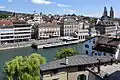 Rathaus is also the name of a quarter within the Altstadt district. It is an integral part of the medieval town on the right side of the Limmat, separated by the Hirschengraben from the Hochschulen quarter uphill to the east, and delimited by the Bellevue and Central squares to the south and north, respectively.