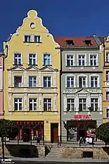 In 1526 the town together with the rest of the Bohemian crown land of Silesia came under the suzerainty of the Austrian House of Habsburg. It remained part of the Piast-ruled Duchy of Legnica until 1675.[8] Goldberg continued to prosper until 1608, when the prosperity was stopped by a major flood that killed approx. 50 of the inhabitants and damaged large part of the city. Five years later, in 1613 the town yet again was struck by great fire that destroyed 571 houses. To help rebuild the town, in 1621 the duke of Legnica granted the right to mint coins, a privilege the town enjoyed for two years.[7] During the Thirty Years' War Goldberg changed hands several times and suffered especially in 1633, when Albrecht von Wallenstein, a former pupil of the gymnasium, beleaguered the city. After the war Goldberg needed almost 100 years to recover. Duke Louis IV of Legnica granted new privileges aiming to help the town prosper through the development of cloth production.[9]