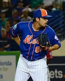 Thornton began the 2014 season with the Indianapolis Indians, going 2–0 with a 1.23 ERA.[13] On April 18, 2014, the Pirates traded Thornton and a player to be named later to the New York Mets for first baseman Ike Davis.[20] Thornton pitched as a reliever for the Las Vegas 51s of the Class AAA Pacific Coast League, going 1–5 with a 4.22 ERA and 65 strikeouts in 59.2 innings.[5][21] He then pitched in three games for Navegantes del Magallanes in the 2015 Venezuelan Winter League.[13]