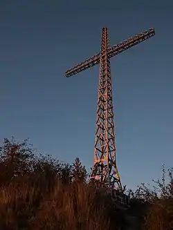 At the top of the mountain, apart from a tall metallic cross that was placed in 1950 by the hiker club Manuel Iradier, there are a few big aerials that transmit television and radio signal to Vitoria-Gasteiz.