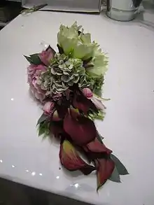 Extensive commercial production of Zantedeschia for cut flowers and/or planting material occurs in California, Colombia, New Zealand and Kenya.[21] Plant breeders in California and New Zealand continue to produce an extensive range of new hybrid cultivars. The so-called white calla is derived from Z. aethiopica. All varieties with flowers with shades of yellow, orange, red, purple are mainly derived from Z. albomaculata, Z. pentlandii, Z. elliottiana and Z. rehmanni.