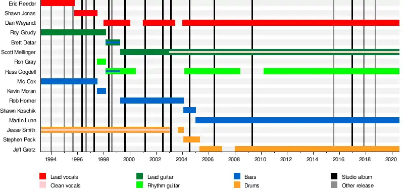 | Dan Weyandt | lead vocals, bass | 1998–present (vocals), 2003 (bass) | Seasons in the Field, Lonely//Ghost//Parade, Sower |
