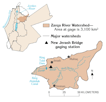 The new Jerash Bridge crosses the Zarqa upstream of King Talal reservoir, on the road from Amman to Jerash. The bridge is the site of a gauging station where flow measurements are continuously taken.