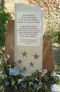 On 11 August 2012, six people (3 young women and 3 children), residents of Zarzosa, who had been to the fiesta of San Llorente de la Vega (12 km away), were on their way back by car to their homes in Zarzosa. When they came to the bridge over the Castile Canal close to Naveros de Pisuerga, the car left the road and fell into the lock on the Castile Canal, where all 6 were drowned.[2]
