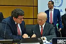 - Special Assistant to the Director General for Strategy, Zef Mazi & Yukiya Amano, Flickr Image: https://www.flickr.com/photos/iaea_imagebank/34413038784