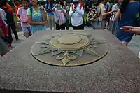 The monument stands just south of the White House at the north edge of The Ellipse, within President's Park. Atop the monument is a bronze 16-point compass rose with a very small worn-down pyramid at its center whose top serves as a National Geodetic Survey benchmark (HV1847).[1]