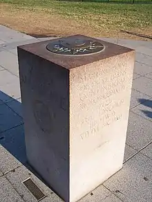 In addition, a "brass plate placed on the ground at the north base" shown below, contains the following inscription.[4]