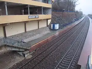 Since May 2007, the three-storey building located at the station is owned by the railway. After reconstruction, which is still pending, the building will become a combined railway and bus station with a shopping gallery.[1] Until then, the ticket office serving the station is located in a kiosk nearby.