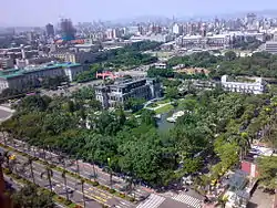 The Presidential Office (center) and the Judicial Yuan (upper left).