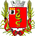 The red box of the coat of arms depicts a "golden serpent twisting upwards and a crown worn on its head" showing the name of the city and the abundance of snakes in the vicinity.