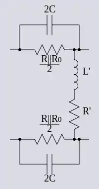 which is precisely the same as a bridged T section with series element Z. The series half-section is thus a series impedance of 2Z. By corresponding reasoning, the shunt half-section is a shunt impedance of 1⁄2Z' (or twice the admittance).