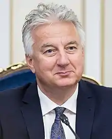 Zsolt Semjén (Hungarian pronunciation: [ʒolt ˈʃɛmjeːn]; born 8 August 1962) is a Hungarian politician, currently minister without portfolio and Deputy Prime Minister in the second, third and fourth cabinet of Prime Minister Viktor Orbán. Semjén is the leader of the Christian Democratic People's Party (KDNP) since 2003, which formed a coalition and alliance with Fidesz.