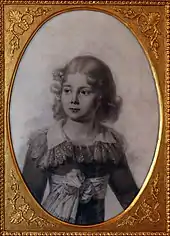 Krasiński's muse for many years was Countess Delfina Potocka (likewise a friend of composer Frédéric Chopin), with whom he conducted a romance from 1838 to 1848.[1][7] In the first half of 1839 he traveled to Sicily, meeting Potocka in Switzerland, and his father in Dresden. He spent much of that time traveling with Potocka and writing poems and other works dedicated to her.[1] In July 1840 his father informed the 28-year-old of plans that he had made for Zygmunt to marry Countess Eliza Branicka (1820–1876). The marriage eventuated on 26 July 1843 in Dresden.[1] The couple would have four children: sons Władysław and Zygmunt, and daughters Maria Beatrix and Elżbieta.[1]